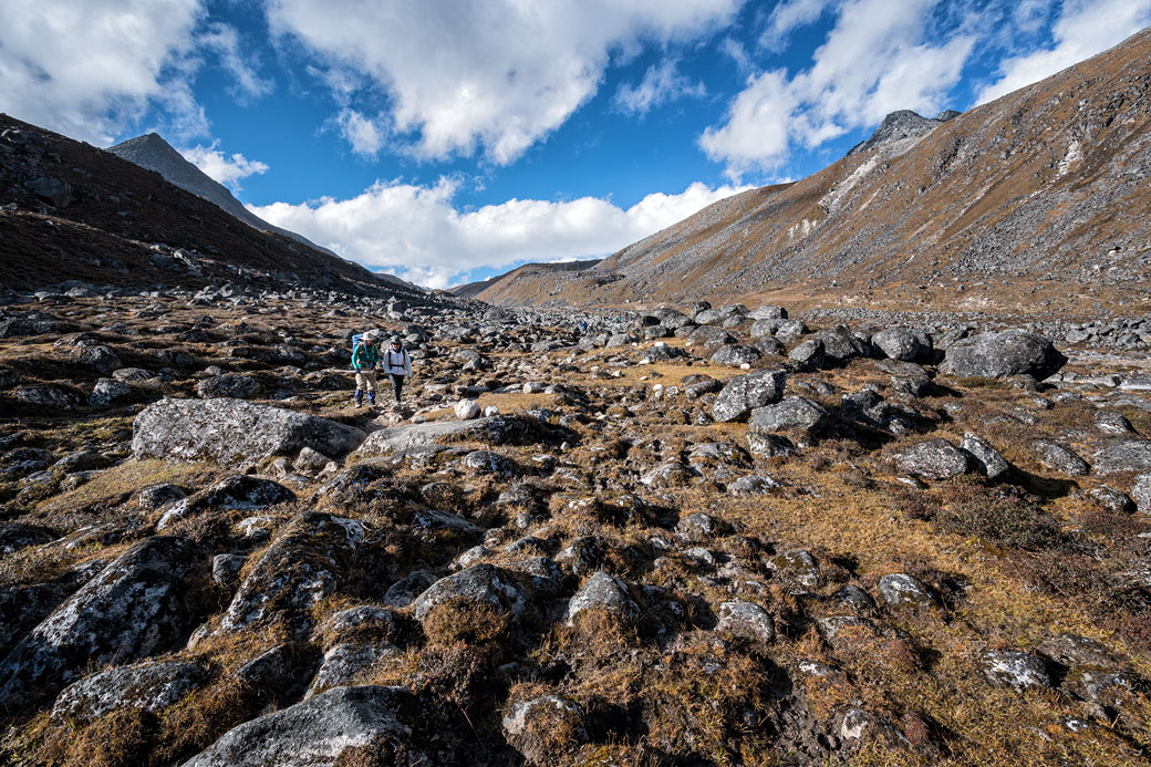 Cette vingtième journée est celle de tous les superlatifs : plus beaux paysages traversés, plus haut col franchi (Rinchen Zoe La), plus belle météo… Si je devais retenir une seule journée de ce Snowman Trek, ce serait celle-ci.
