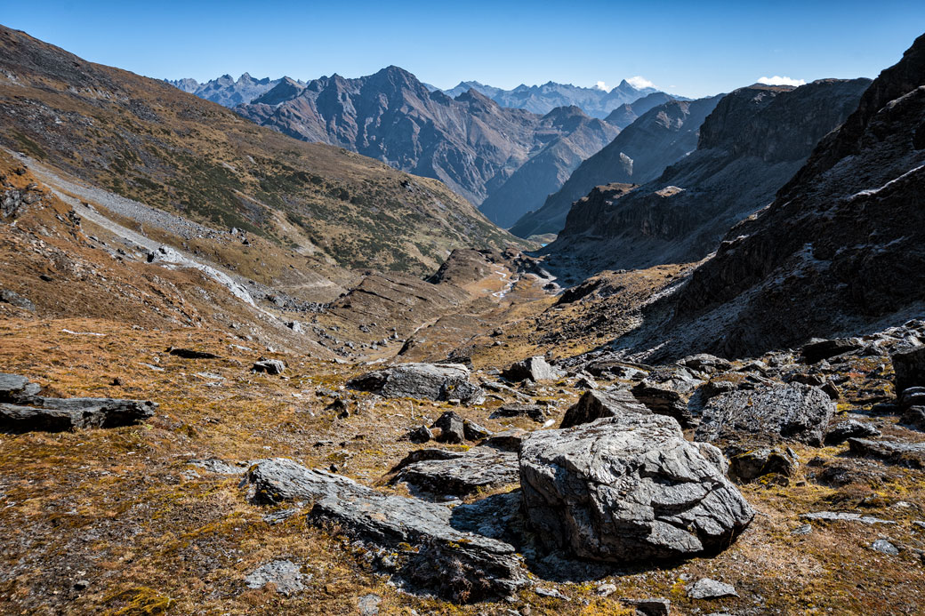 Nous continuons notre montée d’hier pour finalement atteindre notre onzième et dernier col, Tempe La (4665 m). Basiquement, il suffit maintenant de descendre pour retrouver la civilisation.