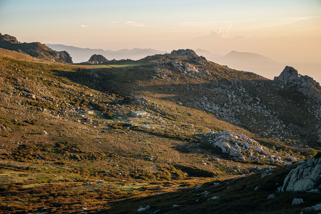 La vue du soleil qui se lève est superbe, le refuge ne pourrait pas être mieux placé. J’aperçois la côte orientale de la Corse qui se trouvait hier sous les nuages.