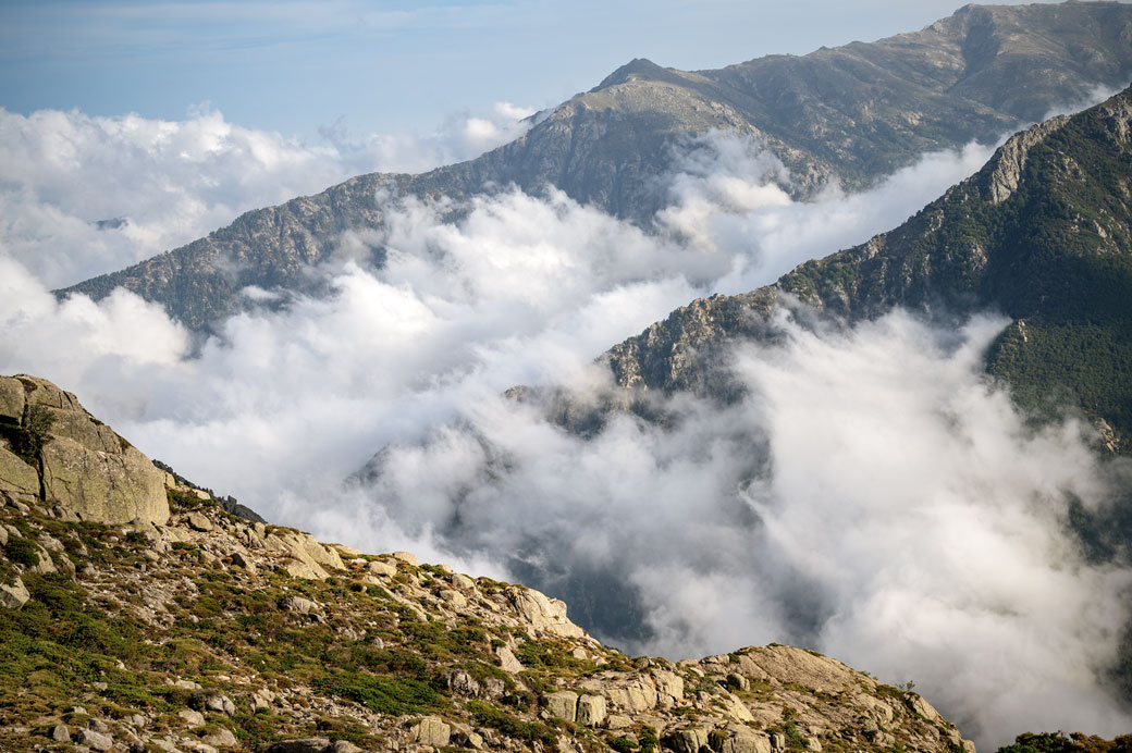 Ce refuge offre une vue magnifique sur les montagnes environnantes (dont le Monte Incudine) qui jouent avec les nuages et le fait d’arriver relativement tôt me permet de choisir une tente un peu en retrait situé aux premières loges pour observer ce tableau de maître.