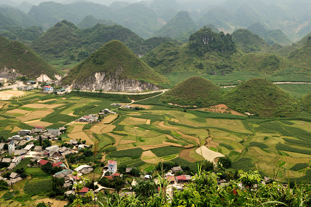 Nous reprenons donc la route dans le but d’atteindre le village de Dong Van (Đồng Văn) situé à deux pas de la frontière chinoise. La route monte jusqu’au col de Quản Bạ d’où nous pouvons observer les montagnes jumelles qui évoquent la forme de deux seins (Fairy bosom), symbole de toute la région. Elles seraient, selon une légende locale, le fruit de l’amour entre une fée et un titan.